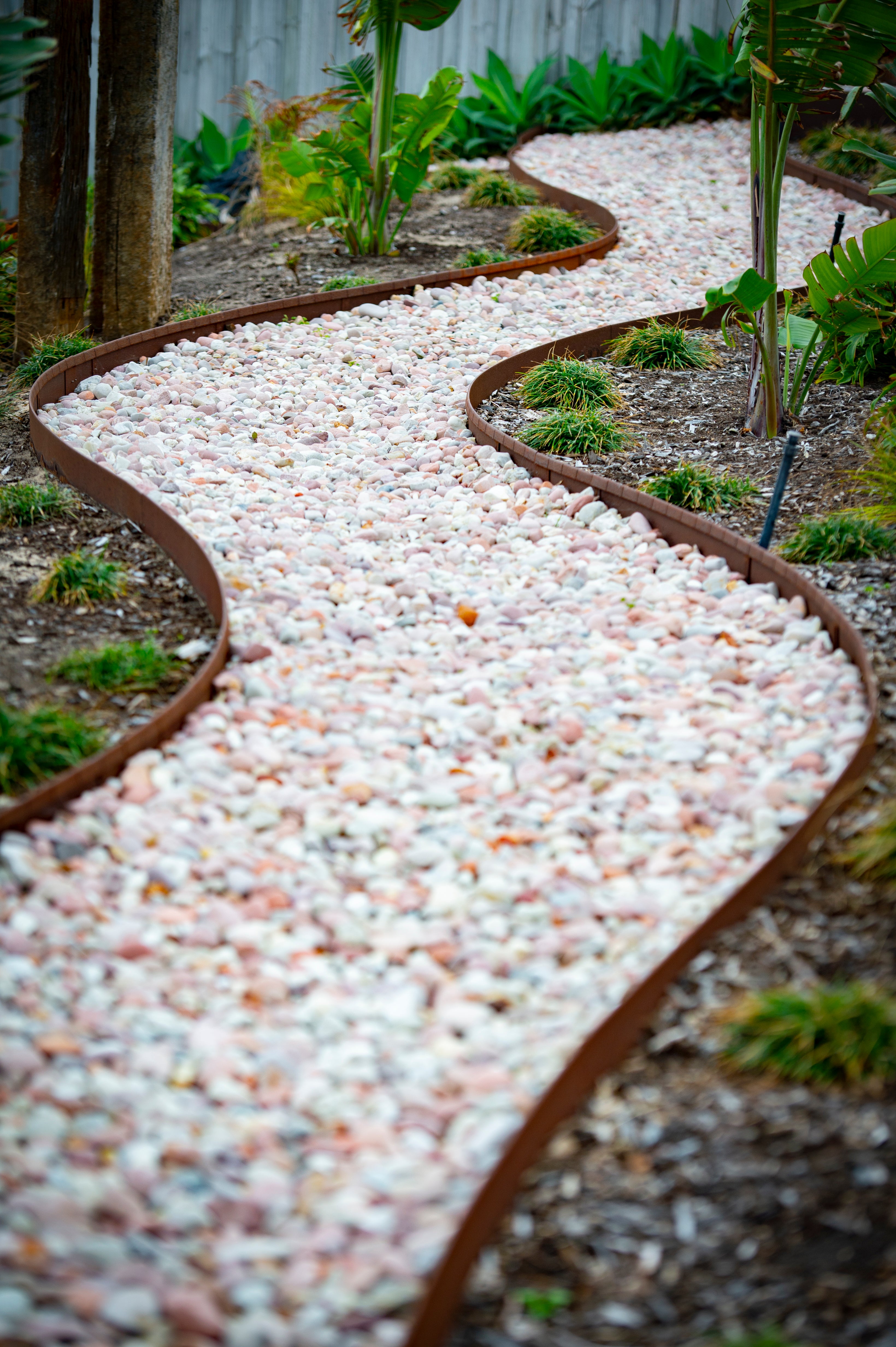 I wish your product was available in the dyi stores. I spent a great deal of money on plastic edgers that came loose and failed to hold the shape I wanted. Your flexible edging allowed me to make curves easily and the locking mechanism provided a seamless appearance.